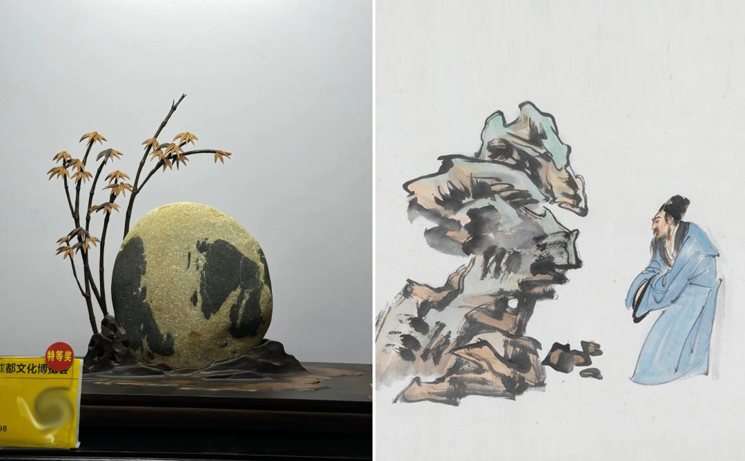这组“米芾拜石”易主后,在2016年参加了第九届柳州奇石节,并且顺利拿到金奖!虽然“米芾拜石”主题的小品组合特别多,但是这组之所以能拔得头筹,一定有它的过人之处,在和诸多的同主题藏品对比后,不难发现,这个组合的“人物”极具特色!