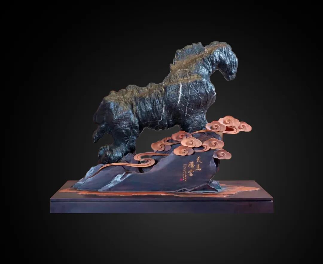 “天马腾云”的骏马姿态雄壮且健美!肌肉线条流畅自然,刚劲有力!昂首挺胸,气势恢宏,威风凛凛。如此石中骏马,堪称绝世无双,世间罕见。