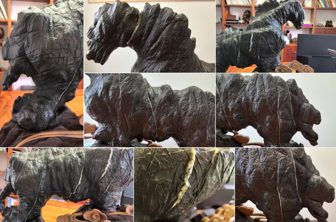 初看以为这匹黑色的骏马纹理以为是黑灵璧,打听后才知道这是喀斯特地貌中的石灰石在地下千万年的时间里沉积形成的奇石,而孔先生收藏这块石头已经有10余年时间!一直深藏宅内,从未露面。