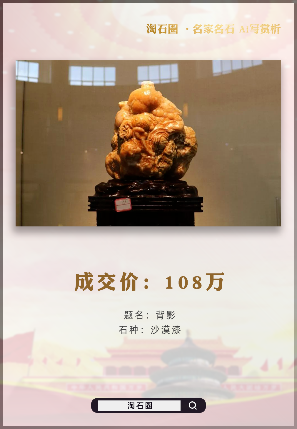 在2019年的一天,一场在石头与情感间交织的故事,在艺术与友情的交流中得以绽放。有一块奇特的沙漠漆,名为《背影》,在拍卖会上以108万高价成交,这并非偶然,因为它早已成为一位收藏家心中的珍品。