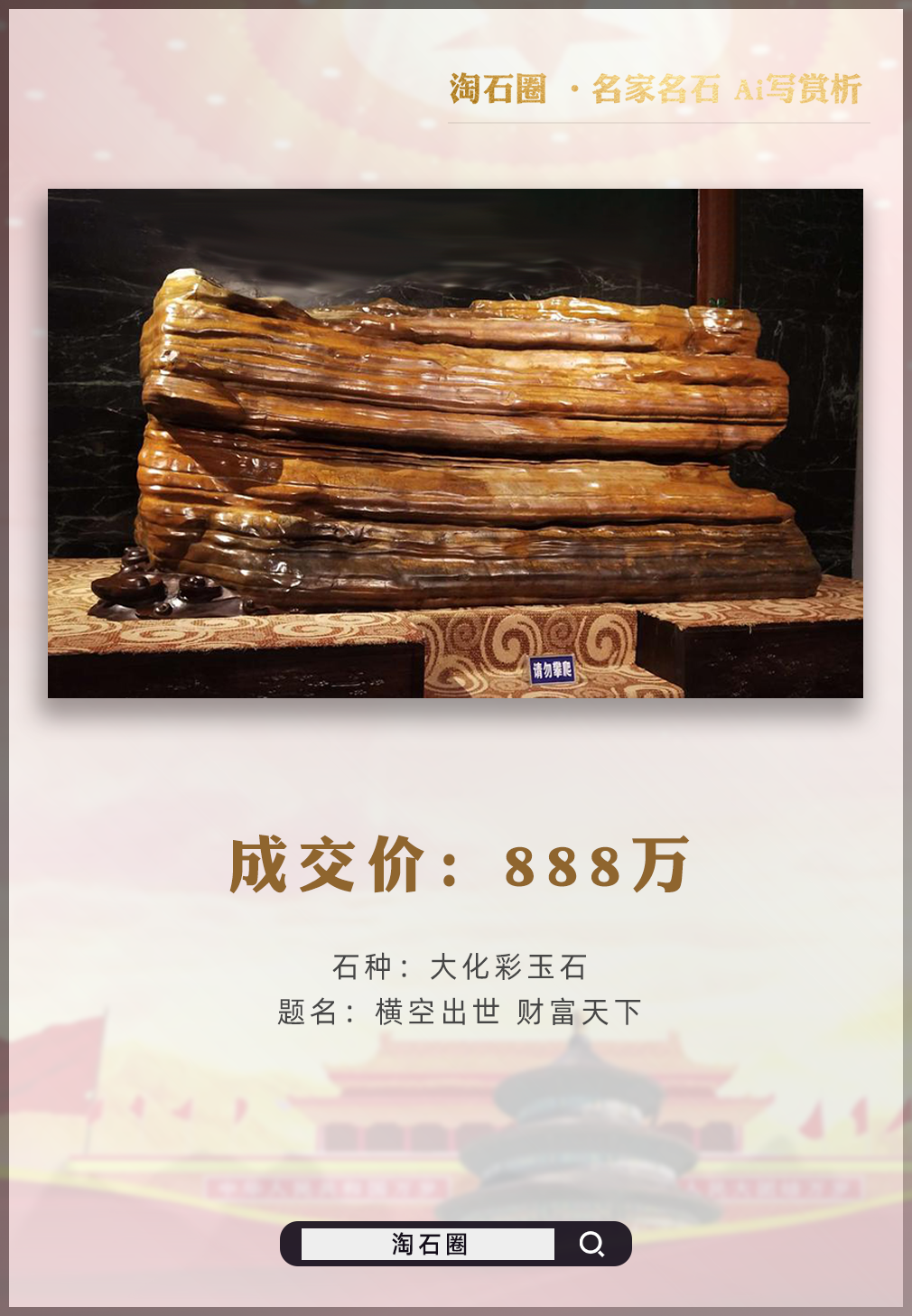 介绍 :【奇石故事汇】公众平台是淘石圈奇石自媒体平台旗下,讲述奇石故事的公众平台,欢迎石友讲述您的玩石故事。