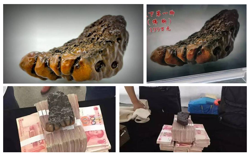 2017年,枣庄石展,来自阿拉善左旗的石商小松带来了一批戈壁石摆摊。有一块戈壁石,像“脚丫子”。标价199万(不打算卖)。有游客提出40万收藏,但小松没答应。多次交涉价格逐渐上升。最终,双方达成协议,以109万成交。