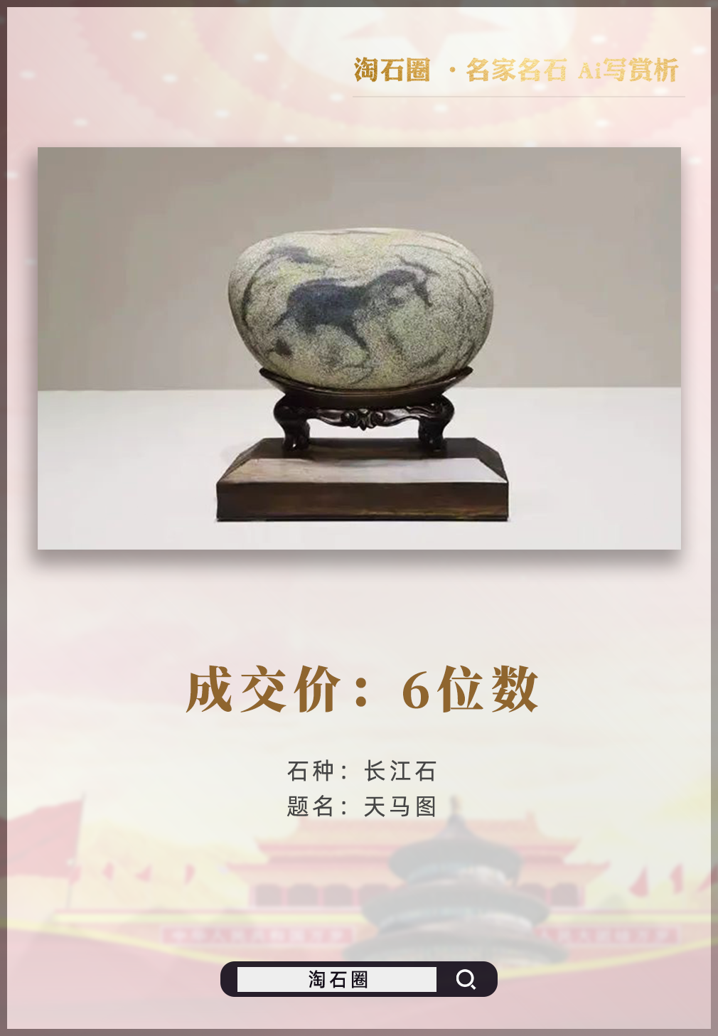 《天马图》是袁中文奇石博物馆收获的一方名石,《黄鹤西楼月》是从袁中文奇石博物馆流出的另一方名石,据图纹石消息,两方奇石都是六位数易主,具体金额不详。