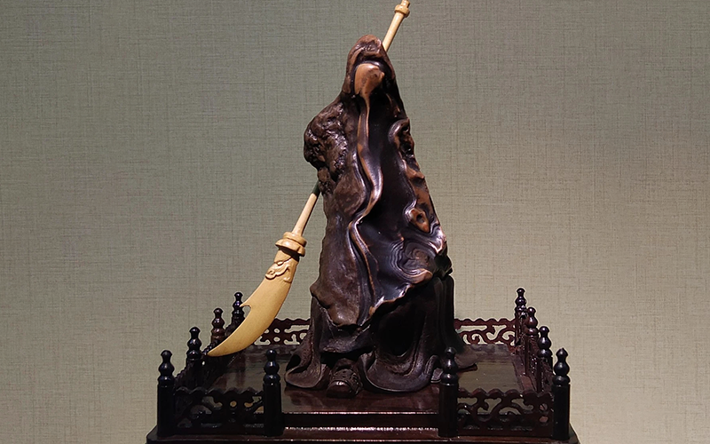 这块石头造型奇特,天然形成关公的形象,长长的弯曲胡子惟妙惟肖,甚至比影视剧中的关公还要威严。底座与石头底部完美衔接,更添了几分气势。
