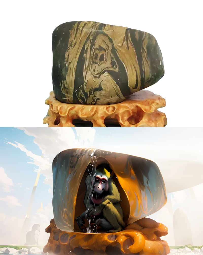 “悟空出世”是一方成名已久的黄河石画面石精品,多年来在展会上频频获得金奖和赞誉。这方奇石具有独特的形象,像是从水帘洞里出来的孙悟空,头型和五官都长得非常逼真和生动。