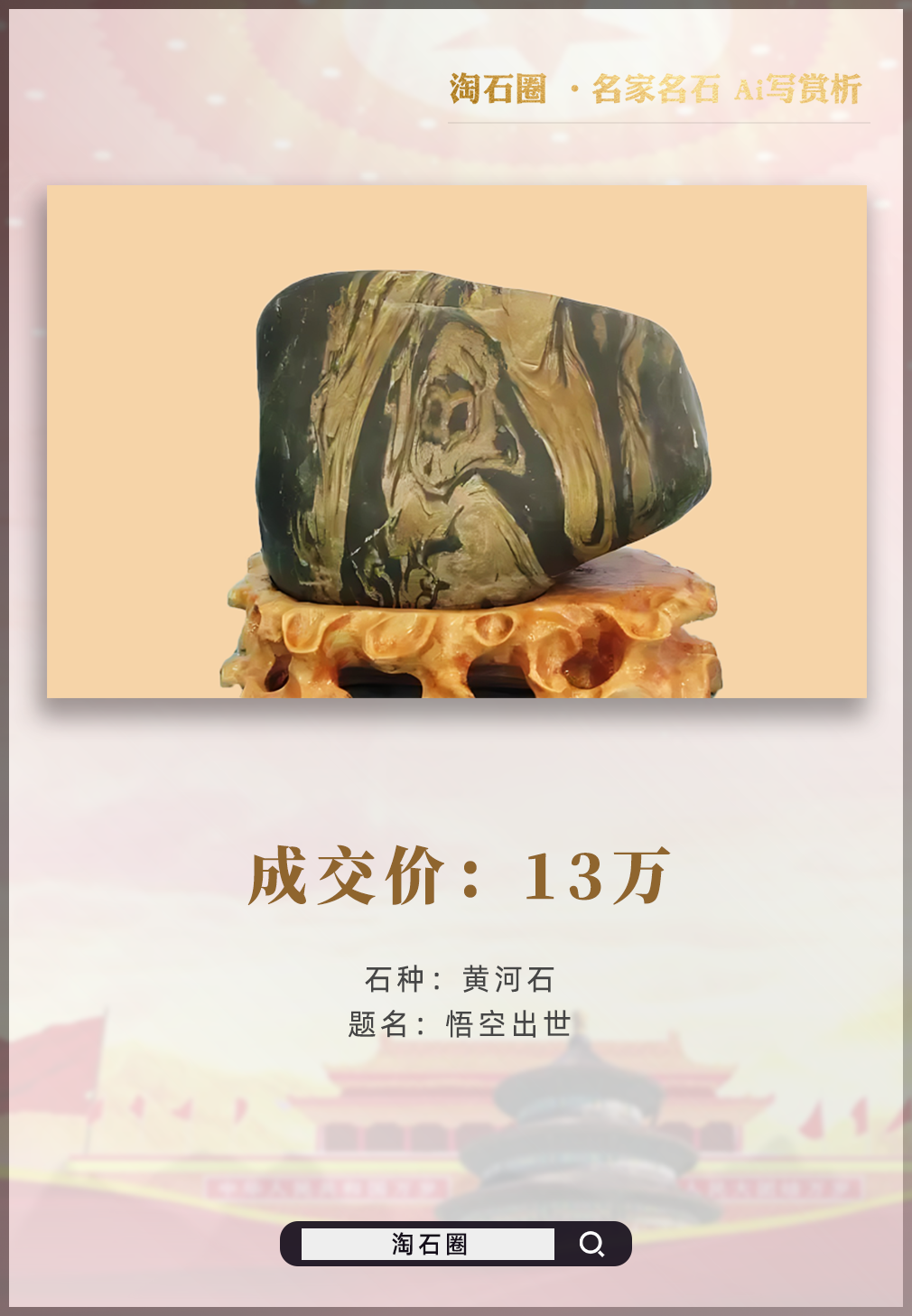 介绍 :【奇石故事汇】公众平台是淘石圈奇石自媒体平台旗下,讲述奇石故事的公众平台,欢迎石友讲述您的玩石故事。