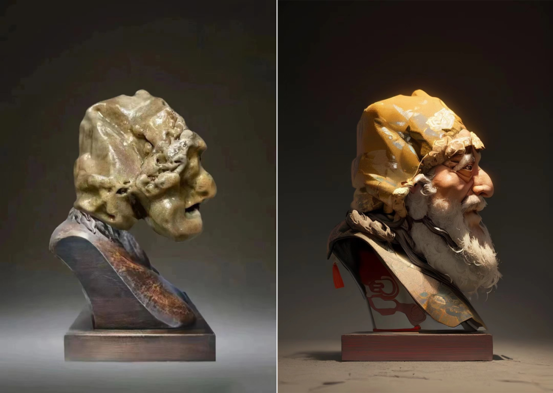 “禅宗·达摩祖师”通体灰褐色,质地坚硬,造型奇特。宛如达摩祖师侧身而立,眼窝深邃,鼻梁高挺,嘴唇微张,神情专注,仿佛正闭目冥思,禅意盎然。其下巴和脸颊线条流畅,刻画细腻,与真人的面部轮廓极为相似,令人惊叹不已。