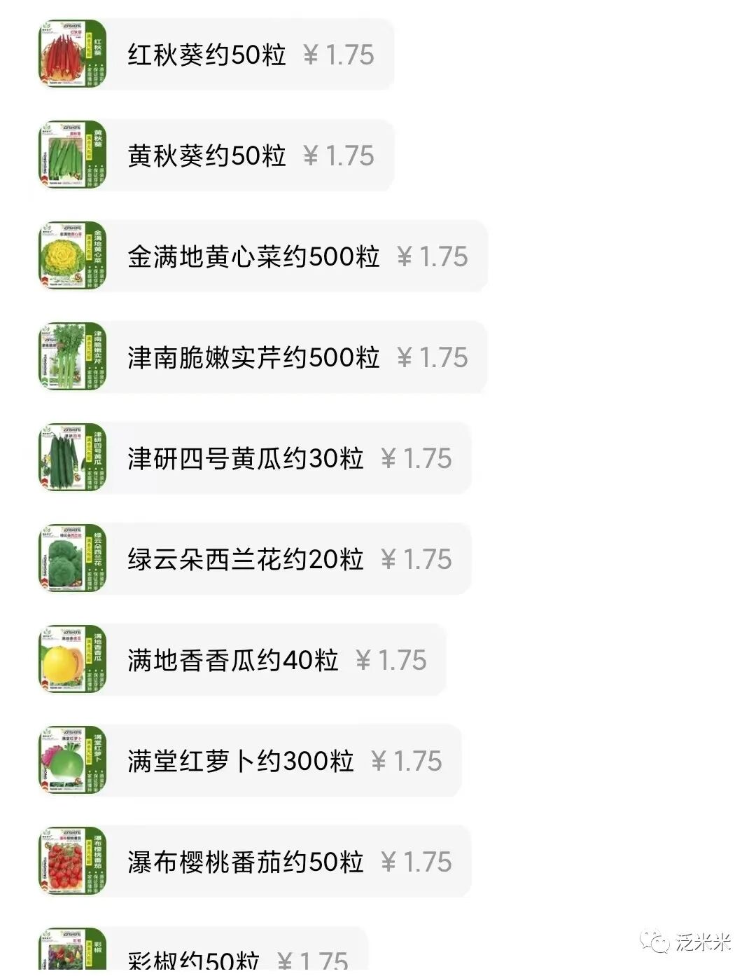 比如泛米米随便找的一家店的截图,黄瓜30粒,秋葵50粒,辣椒50粒,先不考虑发芽率的问题,要是全种了,几十棵黄瓜,那估计要一大片地才够种。