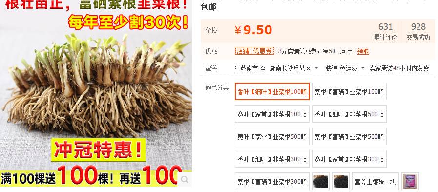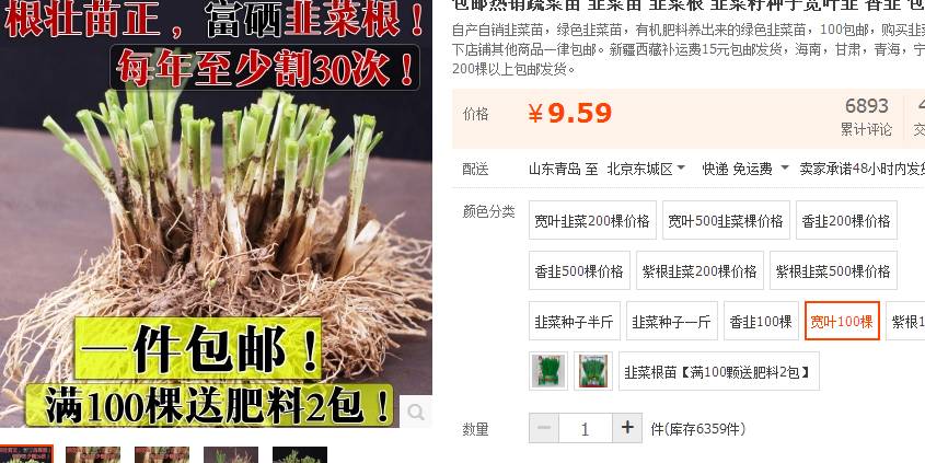 4、淘宝买韭菜根:
