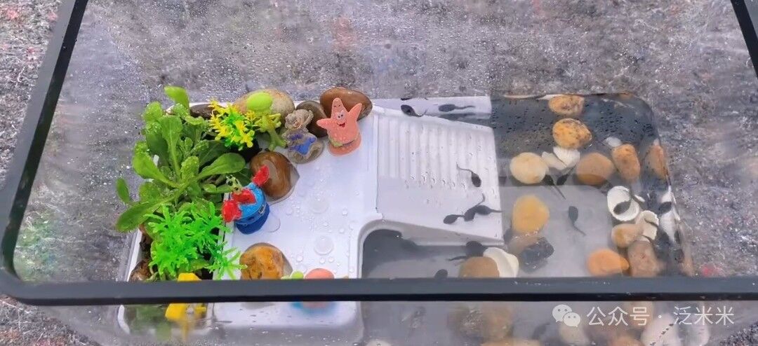 3、用个小鱼缸养着,到时候长大了就可以跳出来,直接在楼顶菜园里除害虫了。不知道到时候是不是一片蛙声,这个感觉不太适合城市。