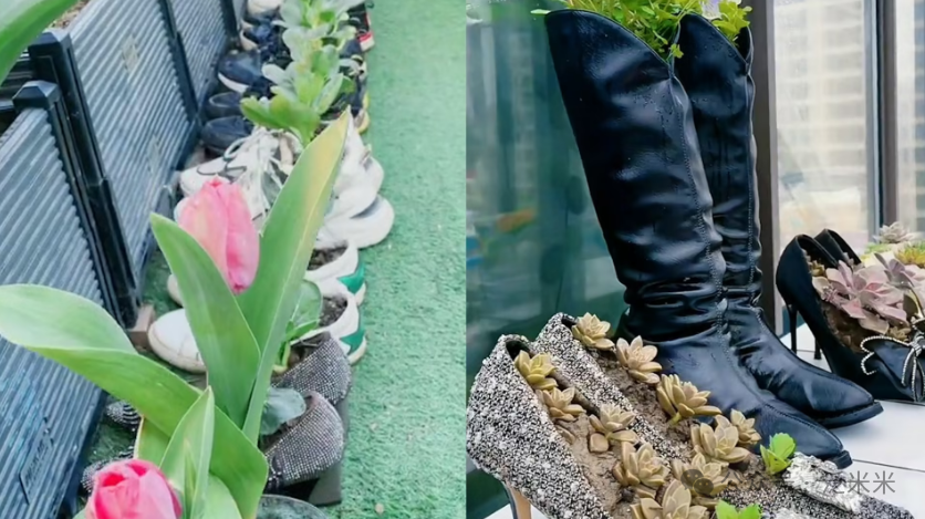 不再穿的运动鞋可以变成独特的花盆?只需在鞋底打几个排水孔,就能用来种植小型植物,如多肉植物或小型蔬菜。之前泛米米文章也分享过《一女子用鞋在阳台种菜养花,“鞋不穿了不能浪费”》。