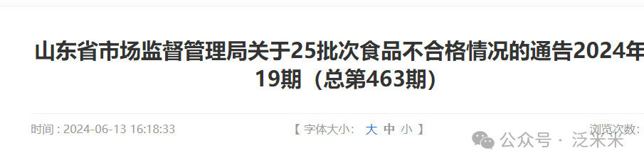 南边的海南看完,看看山东,2024年6月13日发布的19期不合格情况通告,也就是刚发布,还是热乎的。