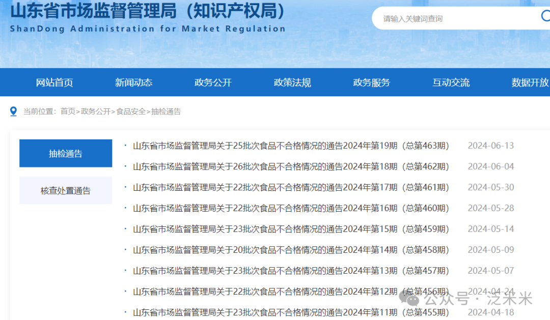 相关信息一般由当地市场监督管理局发布,大家可以自行查询,比如下面山东地区的情况,在山东省市场监督管理局(知识产权局)的官方网站,政务公开-食品安全-抽检通告里,有发布。