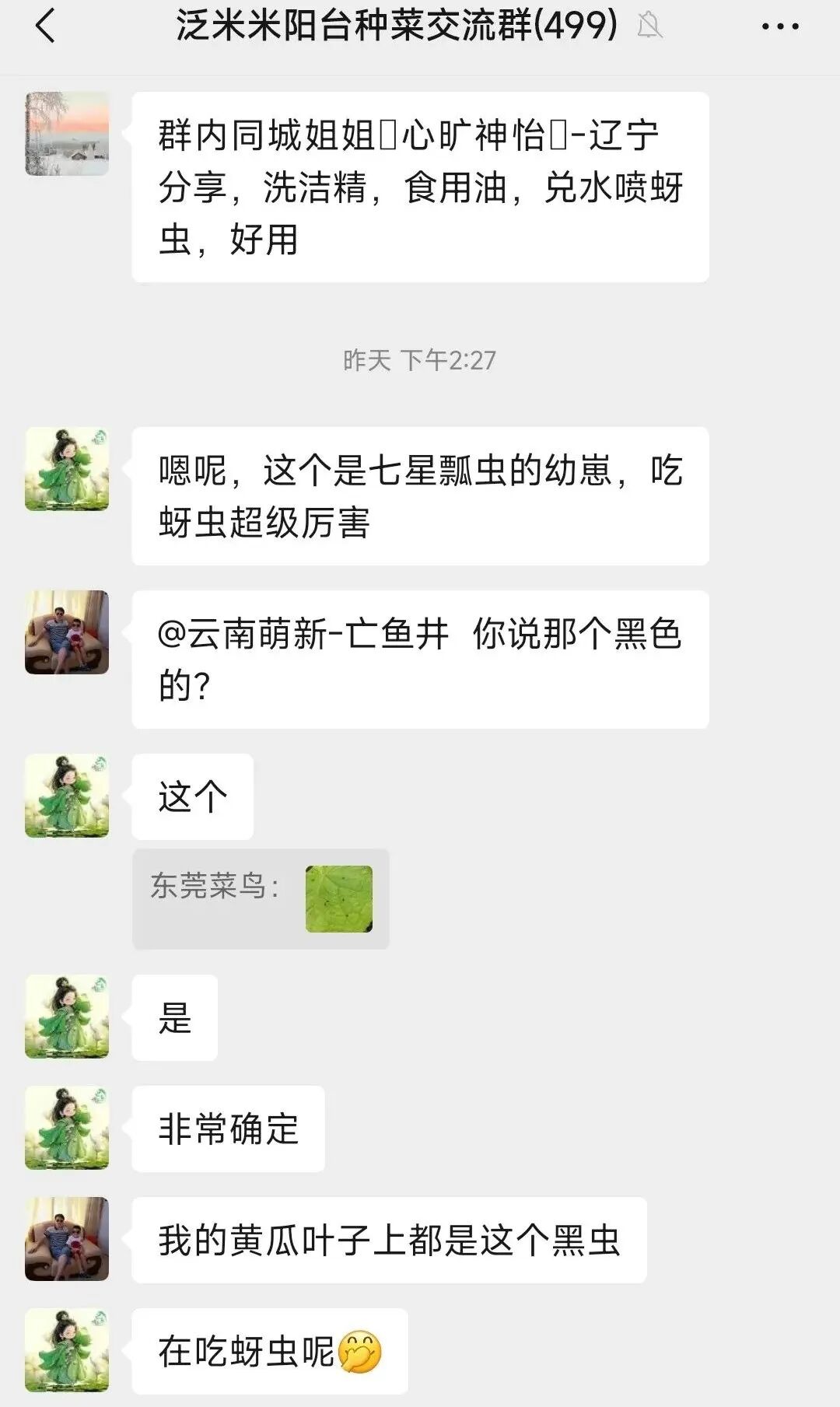 比如,上面泛米米种菜群菜友分享的,就是不小心把瓢虫的幼崽给“误伤”了,不然,有了这么多瓢虫给自己当帮手,叶片上的小蚜虫估计要被这个大自然的天敌消灭不少。