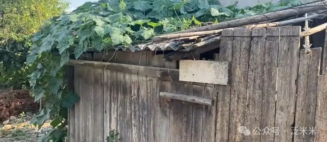 可以看到南瓜藤长得很好,鸡舍的屋顶上都爬满了。