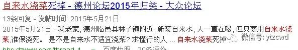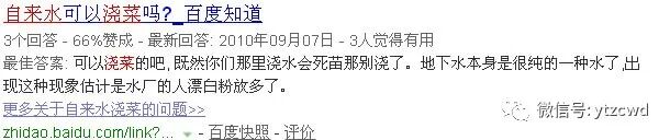 百度网友说自来水直接浇菜浇花直接把菜给浇死了,其实原因就是余氯的存在,也就是常说的漂白粉,相信大家经常看到,从自来水龙头接杯水,接出来很浑浊的,要等一会才散掉。