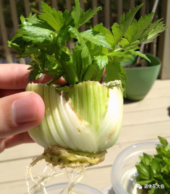 它不仅可以拿来土培,而且也可以直接水培芹菜根来得到新的芹菜,供人食用。