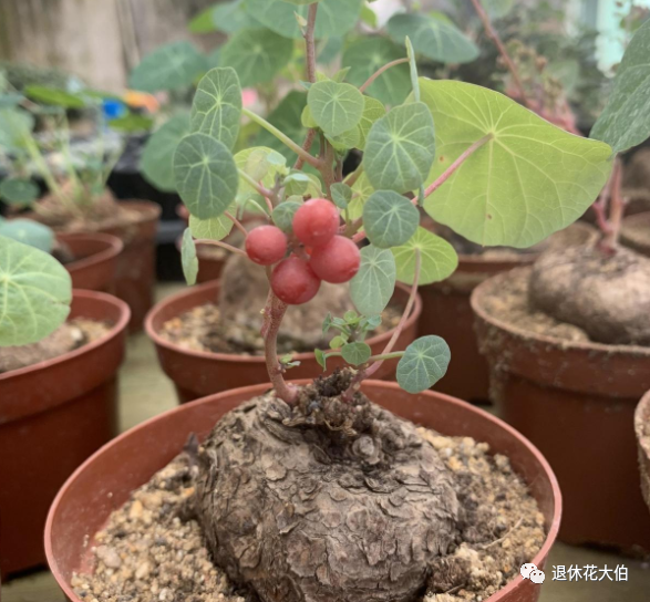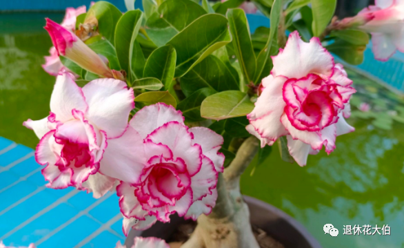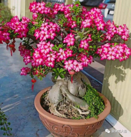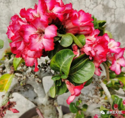 此外,在市场上出售的这种沙漠玫瑰盆景多是矮化后的观赏品种,
