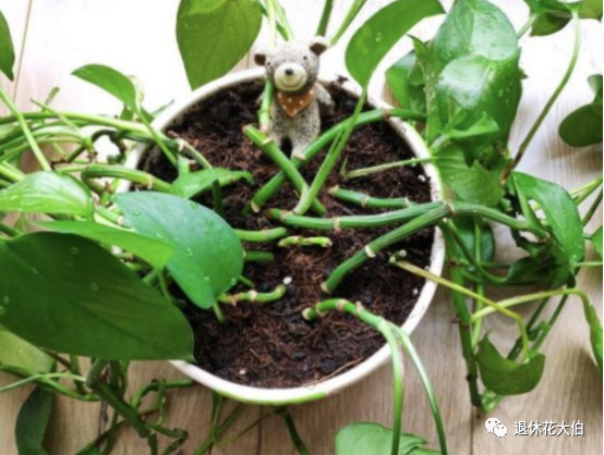 这样放置在室内半阴的地方,间隔十天半个月往里边补充一些水分,绿萝就能够一直蹭蹭的长个不停。