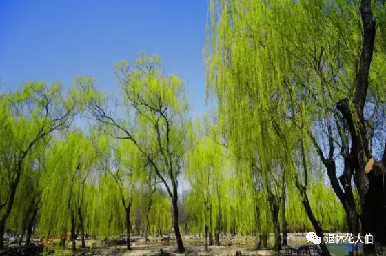 柳树有纤细的枝条,如眉的柳叶……,长叶还早,每年早春时节,就是一道靓丽的风景线。