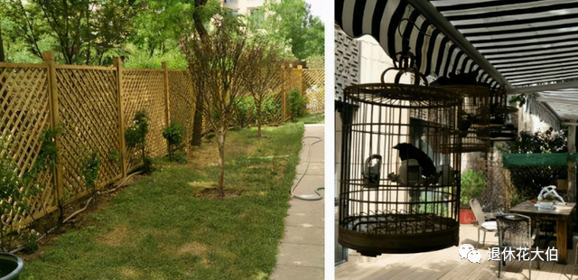 在遮阳棚里直接设置了专门的地方悬挂鸟笼,而且从分享出的图片可以看出还有专门喝茶歇息的桌椅,造型简单大气,果然,有钱人的品味就是不一样!