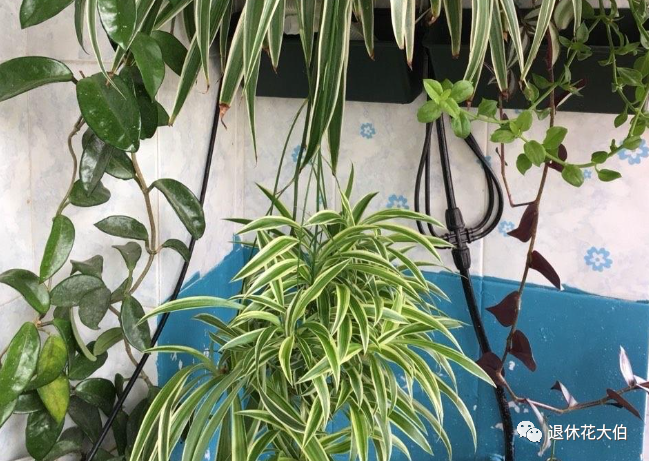 吊兰是一种常见的室内观叶植物,它的叶片呈绿色或带有白色条纹,形状优美,枝条下垂,适合悬挂在窗户或阳台上。吊兰不仅能装饰空间,还能净化空气。