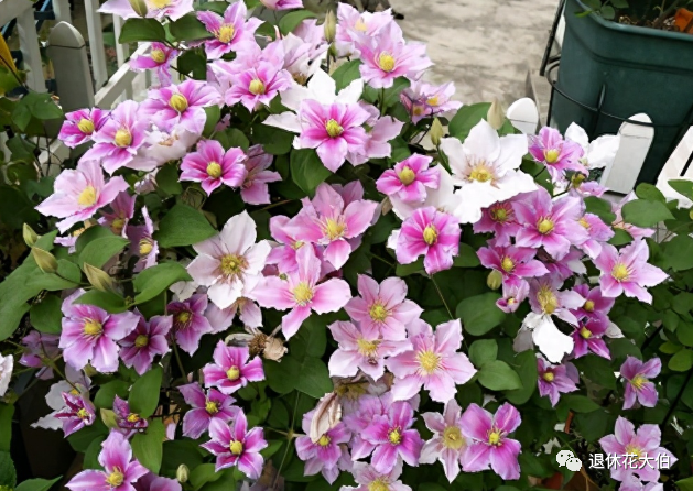 铁线莲的品种也很多,根据开花时间和习性可以分为早春开花型、夏季正常生长型、能够复花的品种和夏季休眠的品种。早春开花型的铁线莲是最早开花的品种,如粉香槟、蜜蜂之恋、仙女座等。它们在冬季落叶后,在春天就会长出新枝条和新花苞。