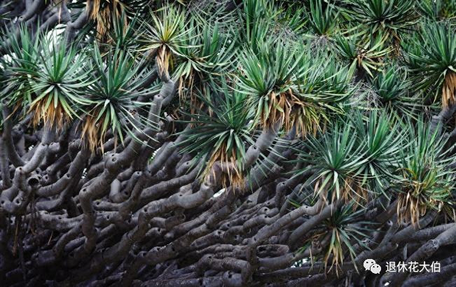 龙血树是一种常绿乔木,原产于非洲和亚洲的热带地区。它的名字来源于它的树干和树枝会分泌出红色的树脂,就像龙的血液一样。龙血树的外形非常独特,它的树干粗壮而直立,树冠呈伞状或圆锥状,树叶密集而细长,呈深绿色或青铜色。龙血树可以长到10米高,直径达到30厘米。