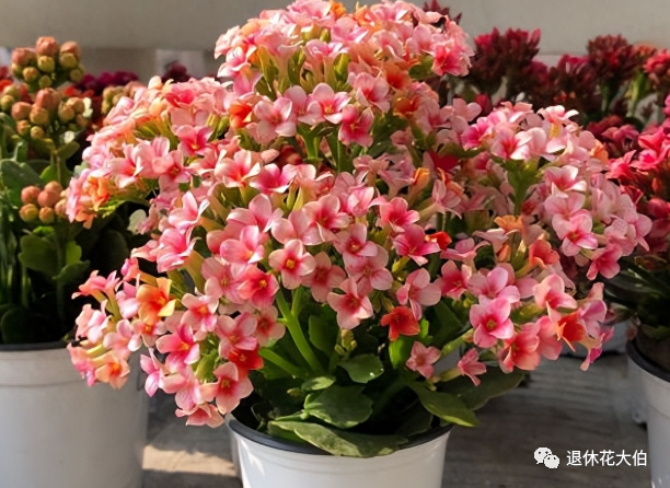 长寿花是一种非常好看又好养的花卉,它的花朵有红、粉、白、紫等多种颜色,而且一年四季都能开花。长寿花的茎干粗壮,叶片厚实,储水能力强,所以非常耐旱。长寿花还有一个特点,就是它的枝条很容易扦插成活,只要把剪下来的枝条插在土里,就能长出新的植株。