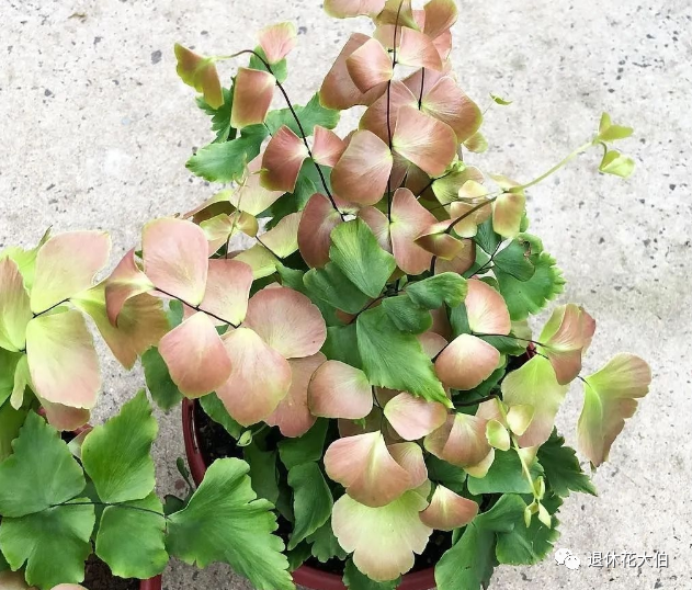 铁线蕨是一种优美多姿的蕨类植物,它的茎叶细长柔软,像铁丝一样弯曲垂挂,非常适合做成盆景或挂篮。铁线蕨的颜色也很丰富,有绿色、红色、紫色等等,可以根据自己的喜好选择。