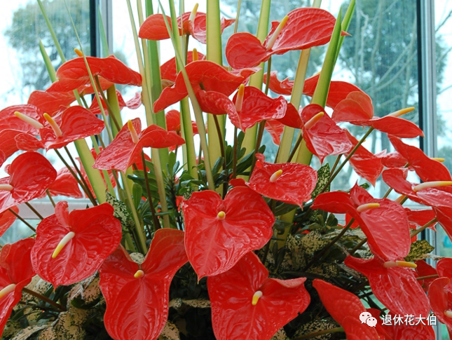 红掌是一种非常容易开花的花卉,它的叶子浓绿光亮,佛焰苞花朵更是鲜艳喜庆,非常适合摆放在室内观赏。红掌有很多品种和颜色,如红色、粉色、白色等等。