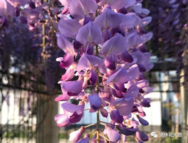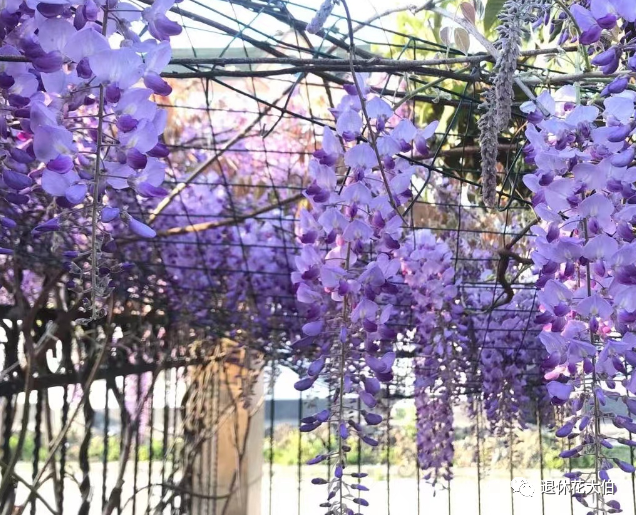 紫藤是一种藤本植物,它的花朵呈紫色或白色的长穗状,非常优雅。紫藤不仅可以作为观赏植物,还可以作为遮阳和围墙的装饰。