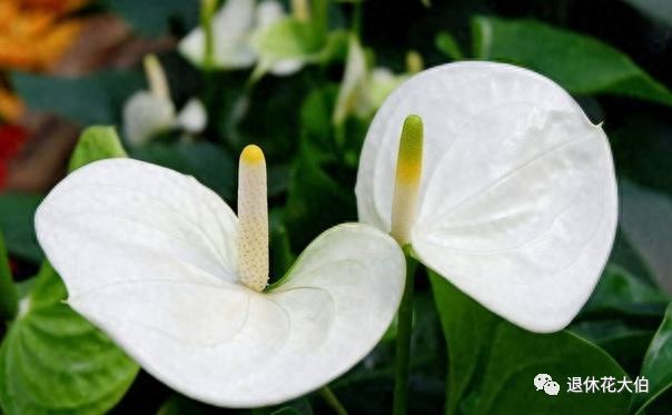 白掌是一种常绿灌木植物,原产于东南亚。它有着宽大而有光泽的叶片和洁白而香气浓郁的花朵。白掌喜欢半阴环境,只要有60%的散射光就能开花,一旦强光直射就容易叶片变黄,甚至不开花。白掌是一种高贵而优雅的花卉,适合放在客厅或书房等地方。