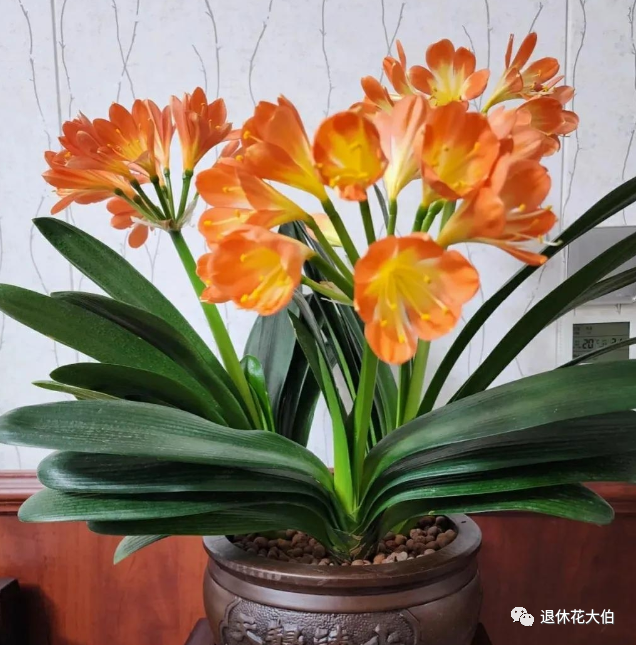 君子兰很容易养护,只需要每周浇水一次,并保持土壤干燥就可以了。君子兰喜欢凉爽和干燥的环境,不需要太多的光照,所以可以放在卧室的角落或书架上。君子兰的花期很长,从冬天到春天都可以开花,所以可以一年四季都享受它的美丽和香气。