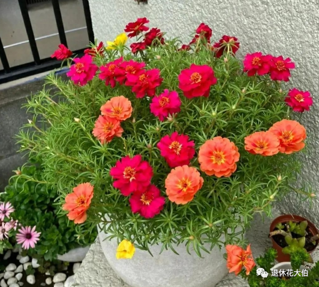 太阳花是一种马齿苋科的植物,原产于南非和马达加斯加。它有着细长而尖锐的叶片,能够减少水分蒸发。它能开出像迷你牡丹一样的花朵,颜色有红、粉、白等多种。