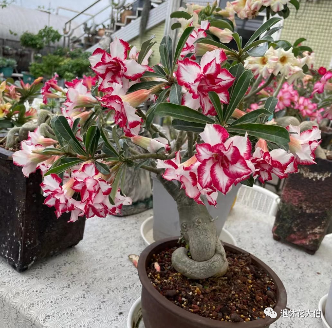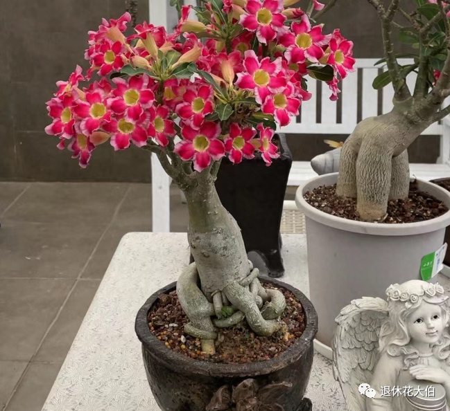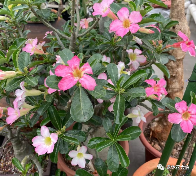 沙漠玫瑰的盆土要选择排水性好、透气性好、肥力低的土壤,比如用腐叶土和河沙1:1混合配制。盆子要选择小一点的,盆子越大,沙漠玫瑰长得越慢、状态越差。