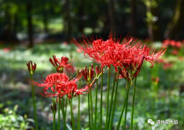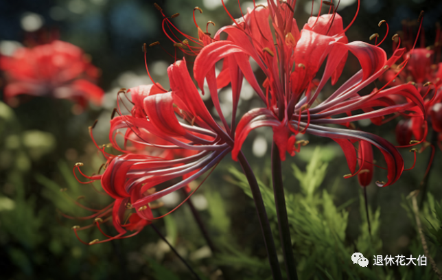 彼岸花是一种非常艳丽的花卉,花瓣呈红色或白色,花蕊外翻,形似火焰。彼岸花的花期很短,只有一天,而且开花不见叶,见叶不开花。彼岸花被认为是不吉利的花卉,因为它有着“鬼花”、“冥界之花”的称号。