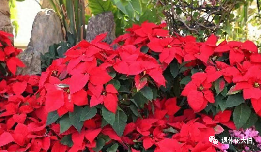 一品红是一种常见的观赏花卉,也是一种常用的年宵花卉,它的花朵有红、粉、白等颜色,花形圆润,花期长,极具观赏价值。