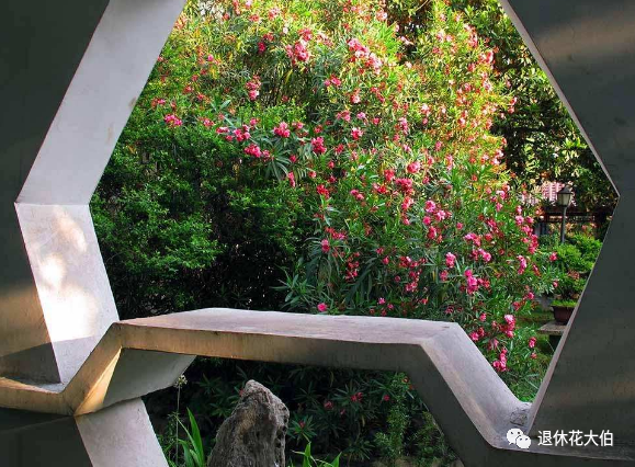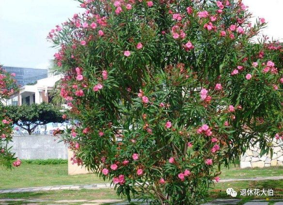 夹竹桃是一种常见的观赏花卉,也是一种常用的绿化植物,它的花朵有红、黄、白、粉等多种颜色,形状像喇叭,花期长,极具观赏价值。