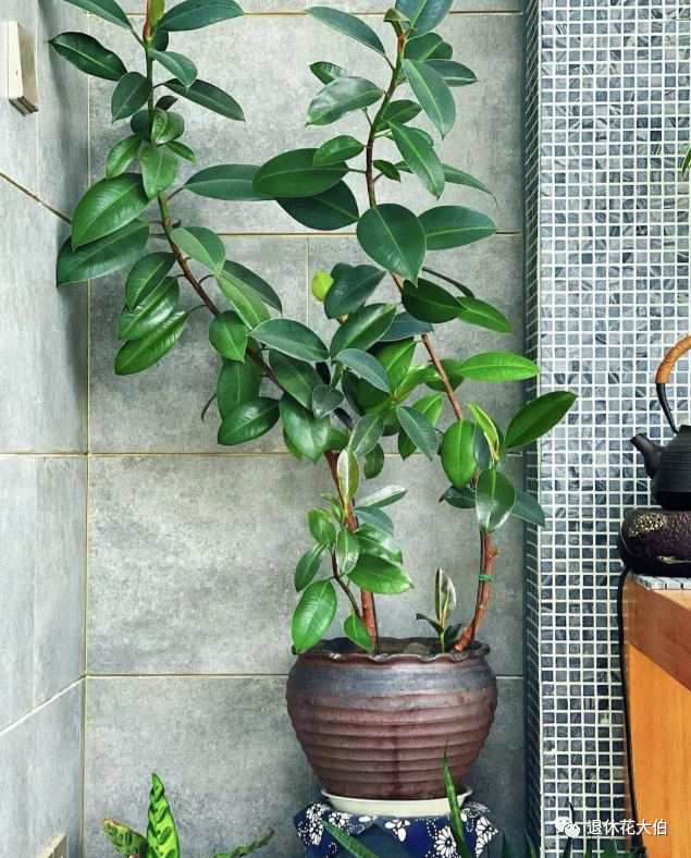在养护方面,橡皮树适应性强,耐阴,适合放置在室内朝南的阳台或窗台。它需要湿润的土壤环境,但也能耐旱,浇水原则是“不干不浇,浇则浇透”。每月施加稀薄肥料,可使叶片更加光滑肥厚。