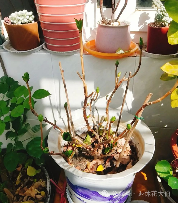 绣球花需要半阴的生长环境,土壤应保持湿润但排水良好。冬季,特别是在气温较低的情况下,应覆盖植株根部以保温。避免将植株置于室内过暖的环境中,以免影响其春季开花。