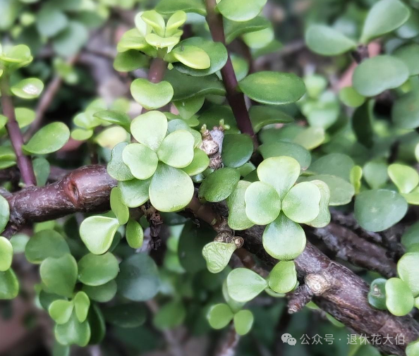 金枝玉叶是一种非常漂亮的多肉植物,它的叶子很小,很精致,像是一颗颗的珍珠,散发着一种淡淡的光泽。它的枝干呈现紫红色,经过阳光的照射,会变成红铜色,非常有质感,非常有观赏性。金枝玉叶可以搭配一个精美的花盆,或者一些小饰品,放在书桌或者窗台上,给人一种高雅的感觉。