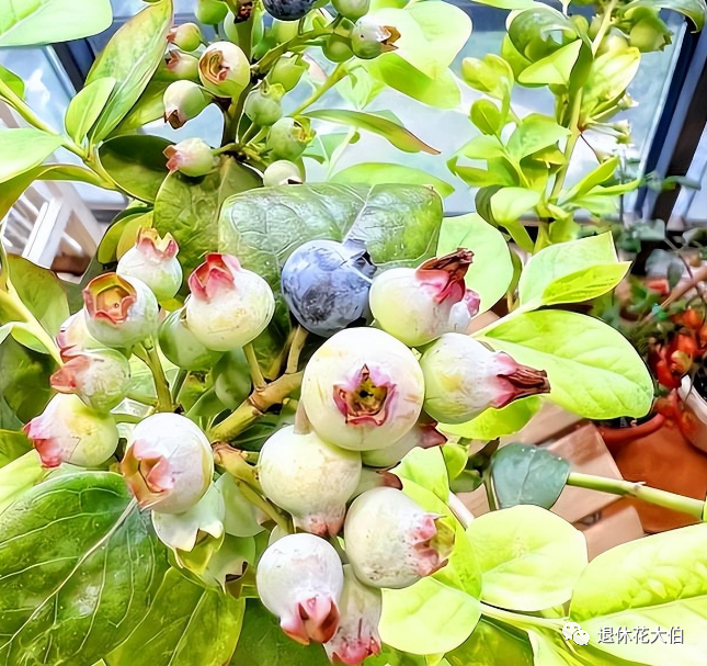除了精致小巧的小番茄,一串一串的挂在枝头上格外引人注目以外,阳台上个头饱满的蓝莓也丝毫不逊色,通常一个接着一个的拥挤在一起,每次往上面洒水的时候都看着非常的诱人!