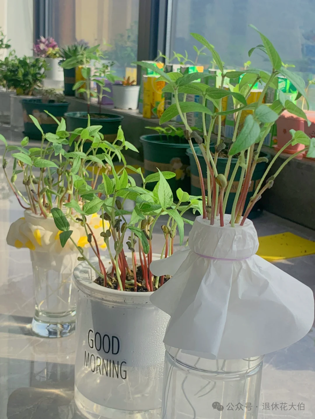 此外我们还可以把绿豆芽打造成小小的“绿植盆景”,点缀室内各处,观赏。