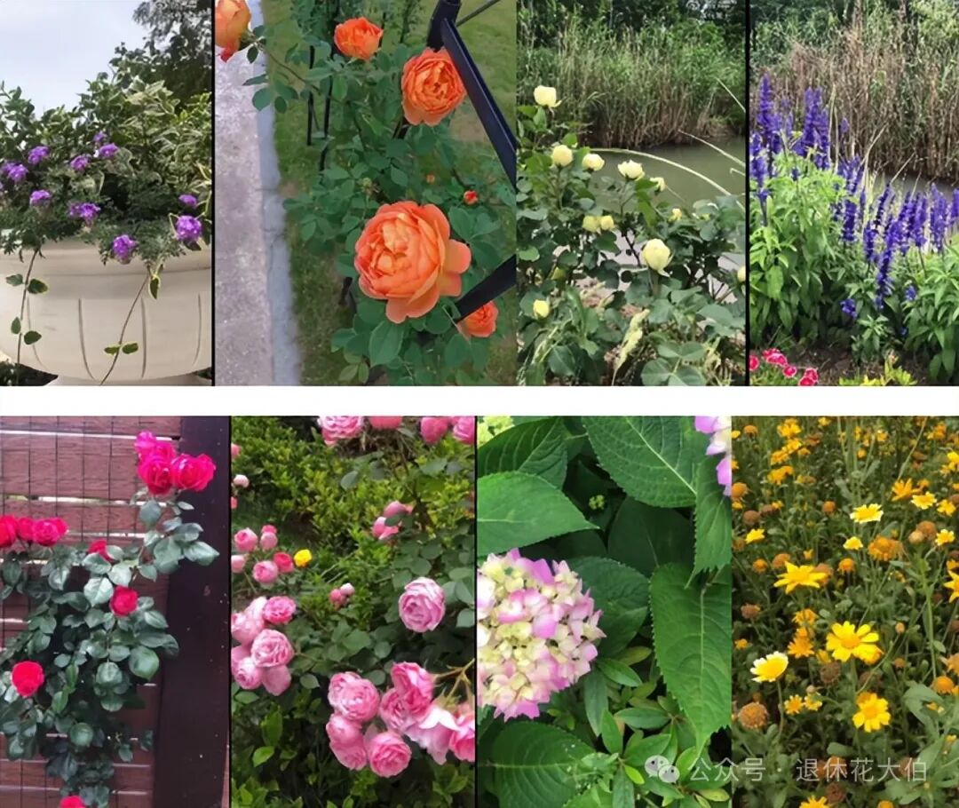 红的、粉的、白色等各种颜色的灌木月季和藤本月季,风一吹就是一片流动的花海,奔腾不息,美得不可方物!