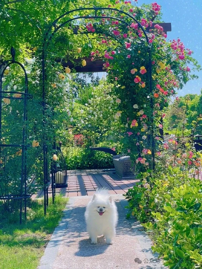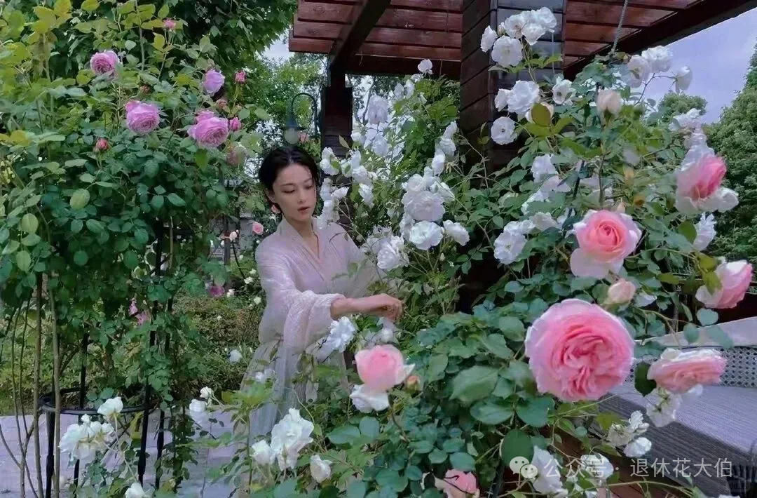 而且张馨予还专门对藤本月季做了点缀,搭建了爬架和拱门,这样既能够更好的照顾藤本月季,同时又能够让植株上的花朵呈现更美丽的姿态。