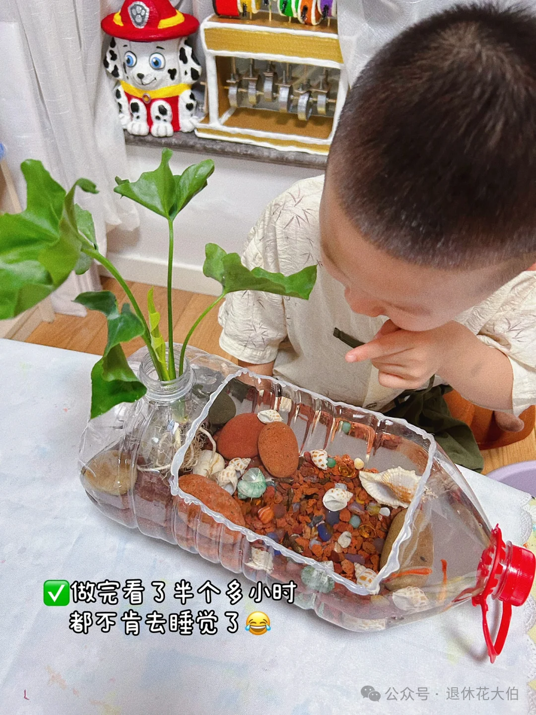 实在是因为他制作出的生态小鱼缸太绝了!