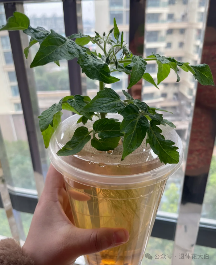 水杯的期间需要经常的换水,每次换水的时候都要检查一下,例如水是否导致了番茄的根部腐烂变质,水中是否出现了水藻或其他的生物……