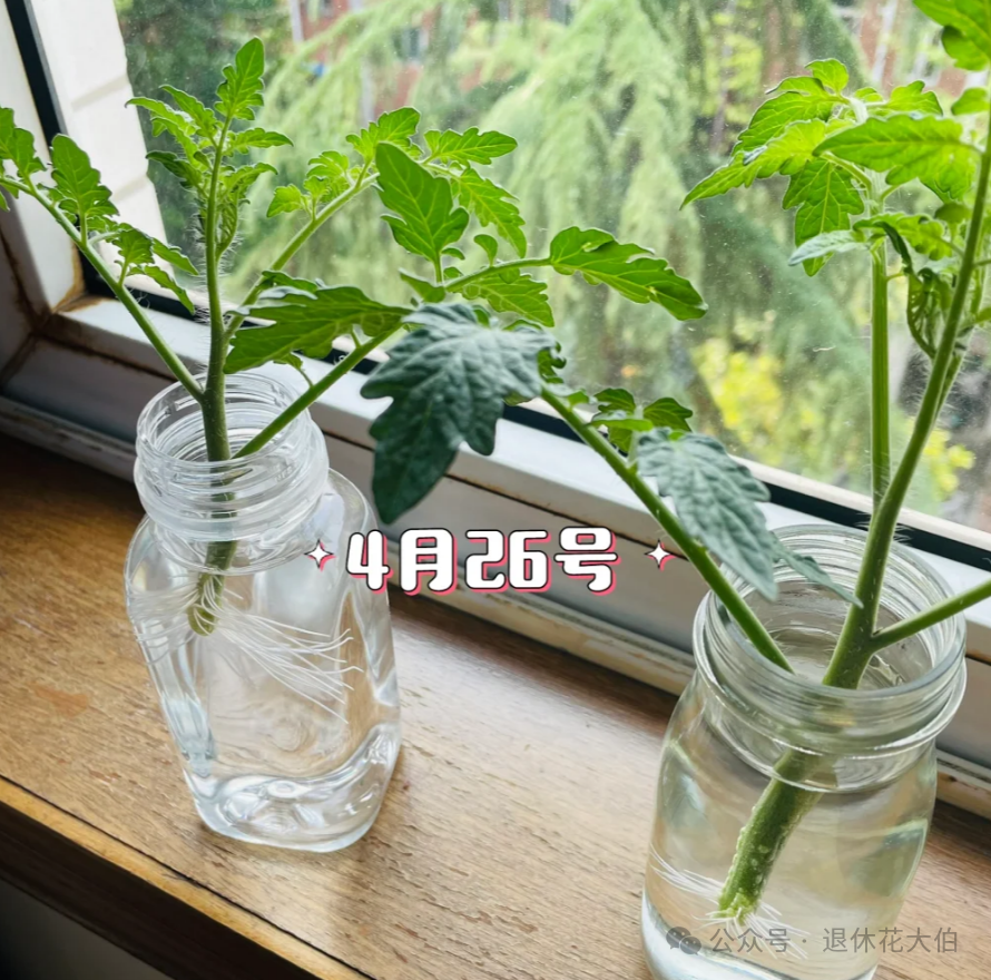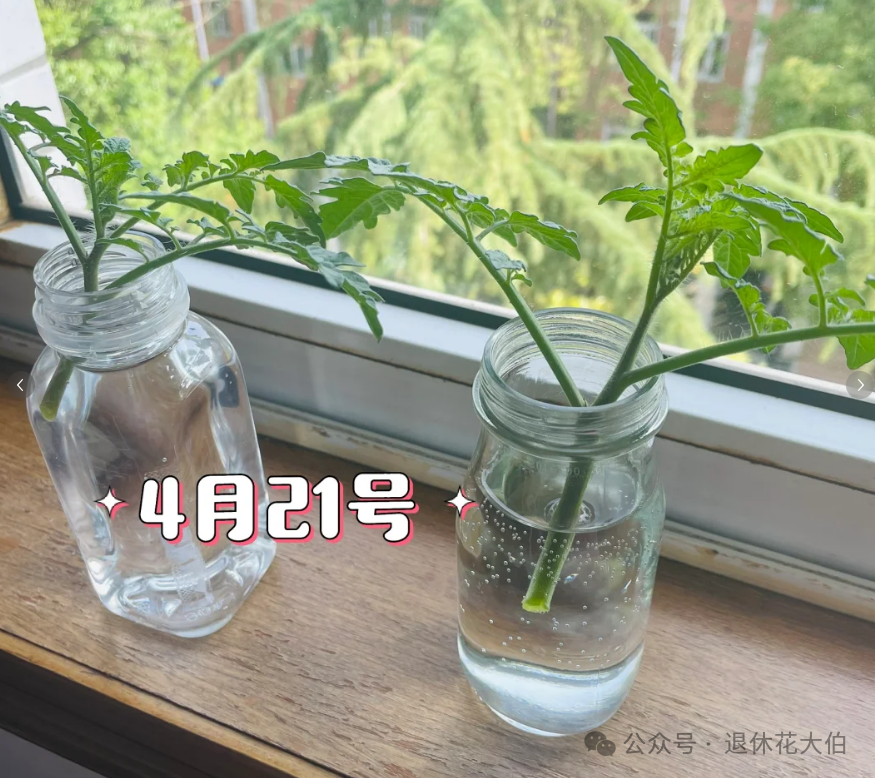 上面已经做好了水培的工作,这个时候我们就可以把它放在光照充足的地方,让番茄茎干每天获取6~8小时的日照,同时在日渐温暖的环境中健康茁壮的成长。