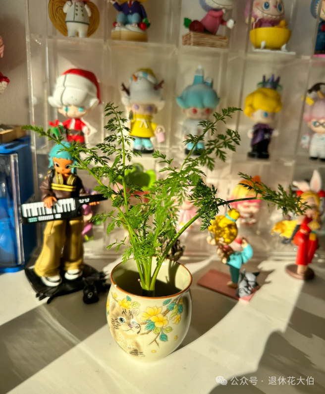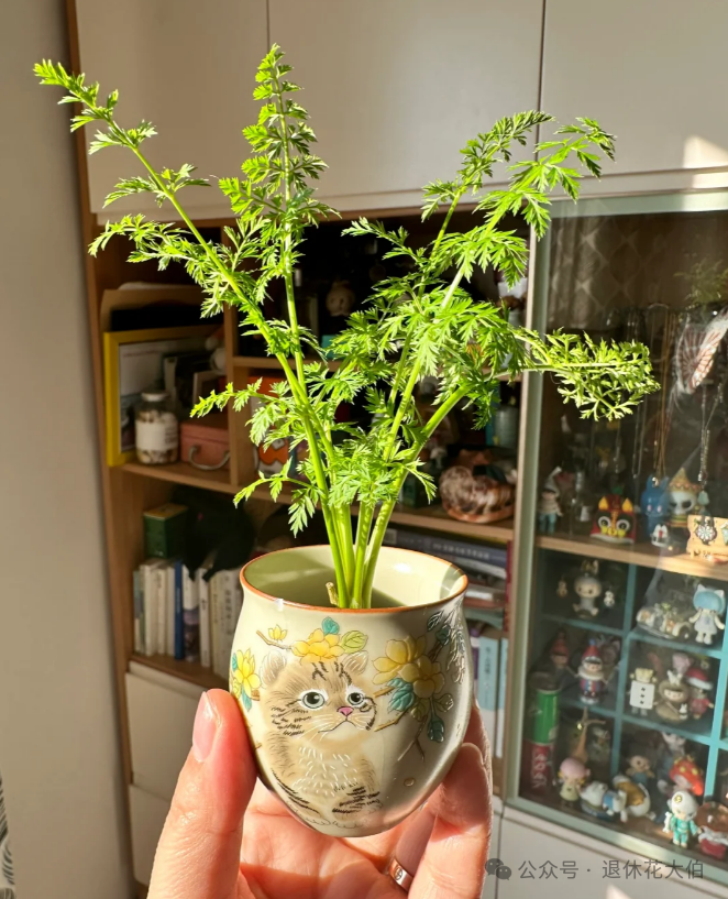 这样稍微一养护,大概15天左右,胡萝卜就会长出旺盛的绿叶,变得生气勃勃,成为家里一道亮丽的风景线。